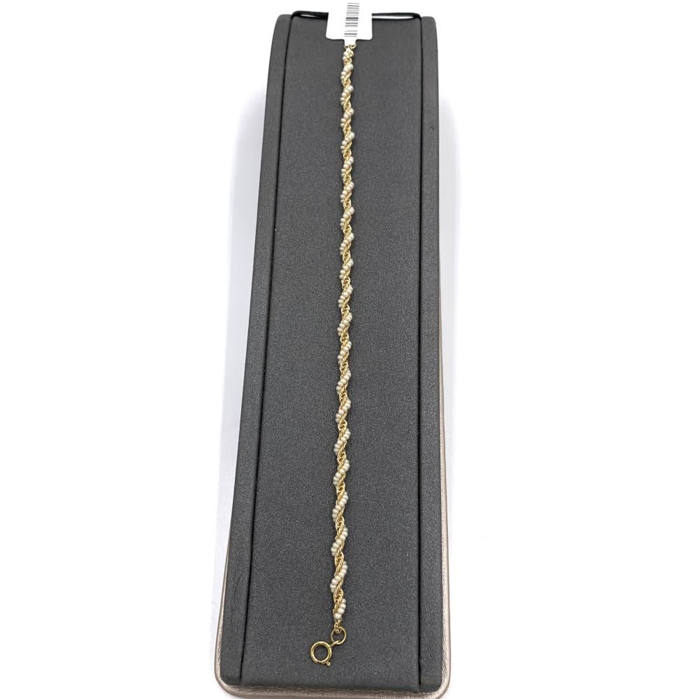 اسوارة ذهب مبروم مع اللولو الطبيعي