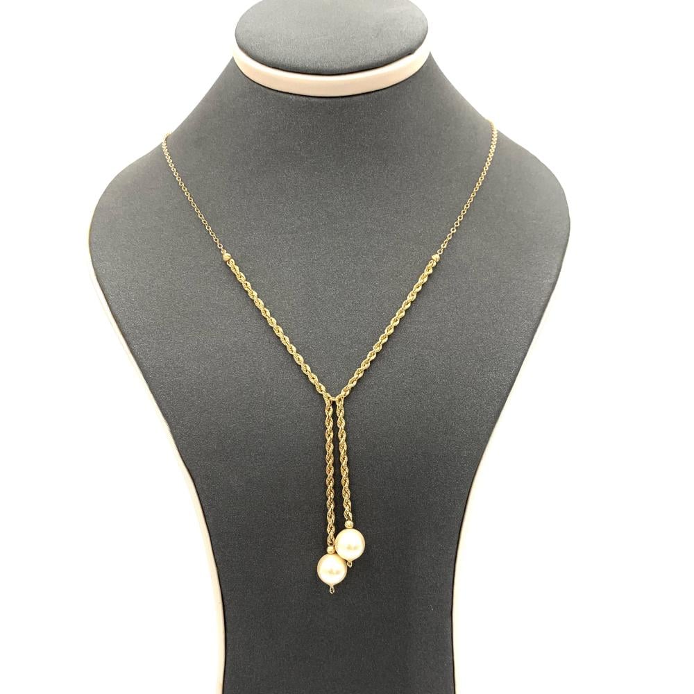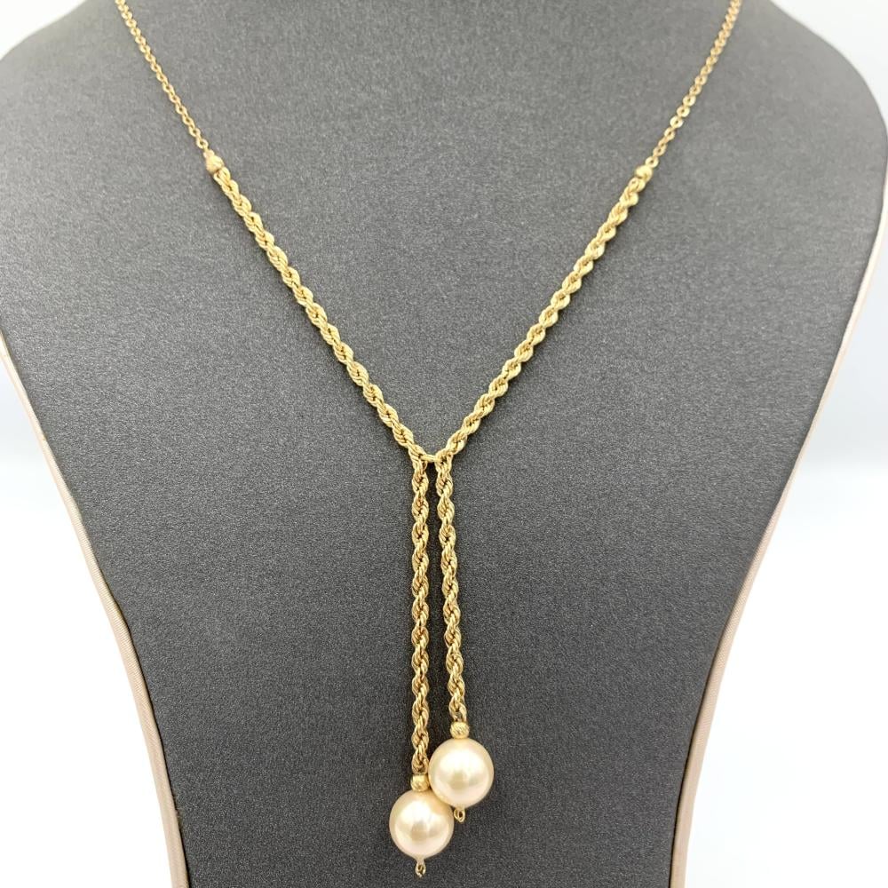 عقد ذهب مميز بتصميم الذهب المبروم مع كرتين اللولو