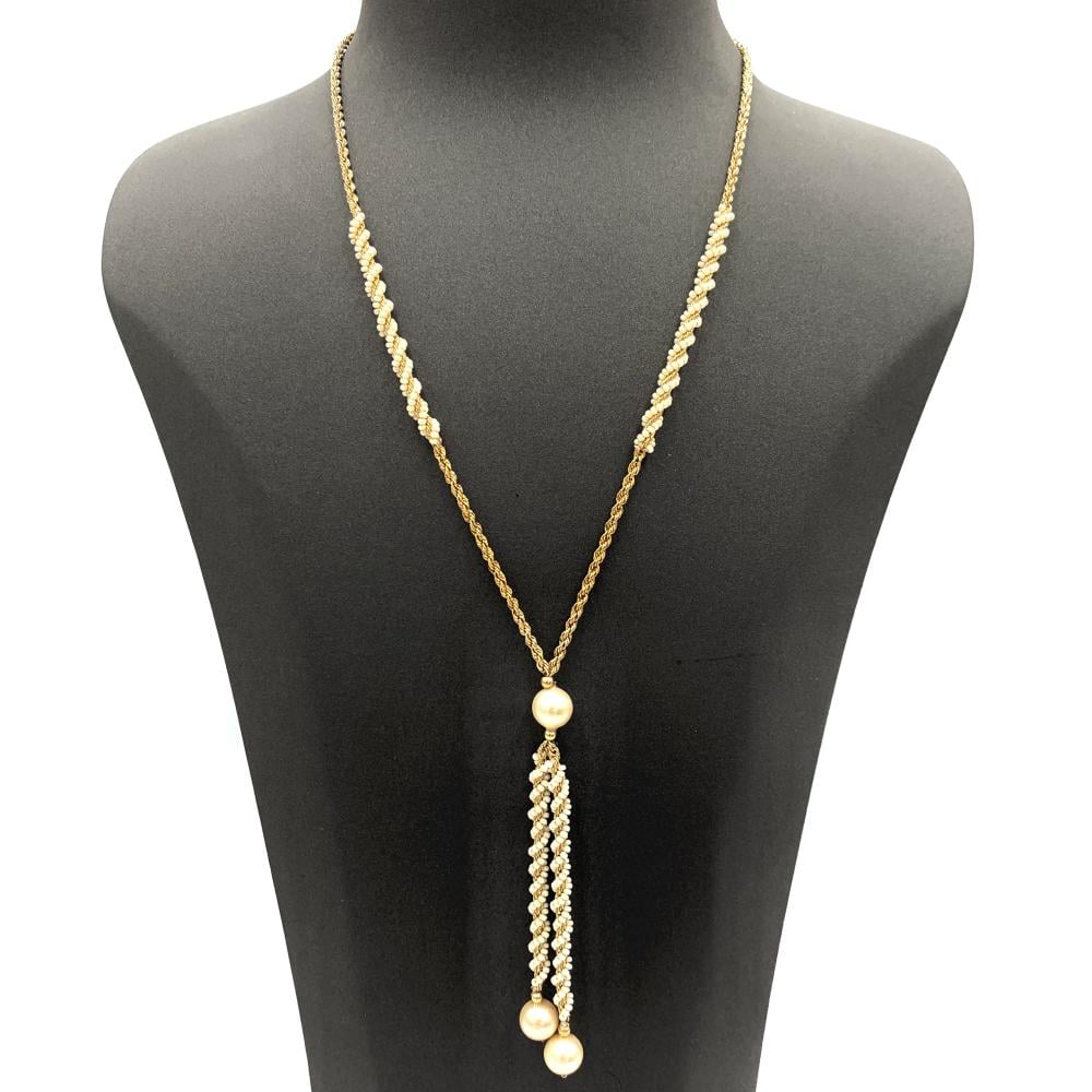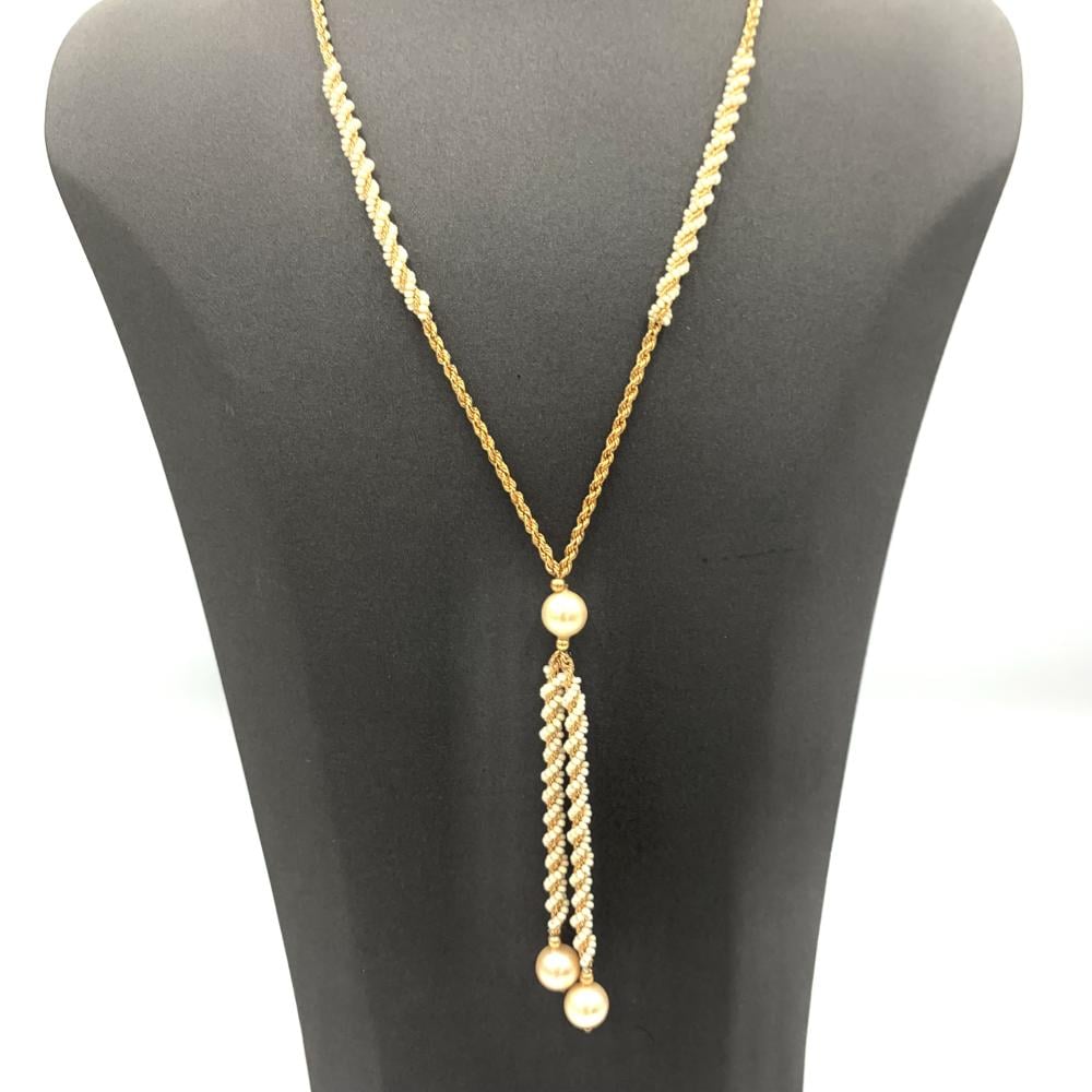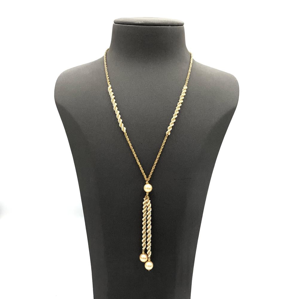 سبحة ذهب منيزك جداً بتصيم السلسال المبروم العملي مع اللولو الزراعي وكرتي اللولو